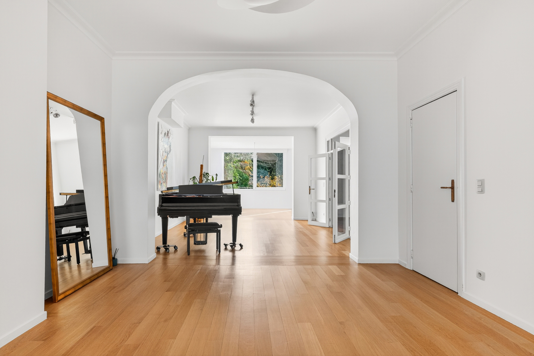 Ideally located on the prestigious Avenue Montjoie, just a stone’s throw from the Bois de la Cambre and quality shops, Victoire Junot presents this magnificent town house that charms with its authentic character and modern comfort. Built on a plot of approximately 640 m² and boasting nearly ten metres of frontage, it offers close to 550 m² of living space. The volumes are generous, filled with light, and the period features have been carefully preserved during an elegant and timeless renovation. The house provides an ideal living environment for a family, with spacious reception rooms of ± 70 m² opening onto a terrace overlooking the greenery, a large fully equipped kitchen with a breakfast area, as well as a sculptural staircase. It also includes seven bedrooms, including a superb master suite of ± 50 m² with its private terrace of ± 15 m², a large study, three bathrooms, and two dressing rooms. A beautiful multipurpose space of ± 40 m², with direct access to a large terrace and the garden, completes the property (family room, TV lounge, etc.). The magnificent south-facing garden, bordered by a Natura 2000 zone, offers a true haven of peace. Garage, laundry room, large cellars, and compliant electrical installation. An exceptional property combining refinement, comfort, and serenity close to all amenities. Energy performance: PEB D – Ready to move in.