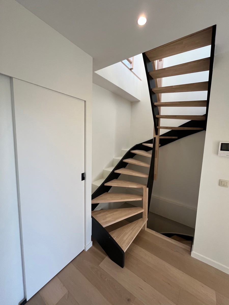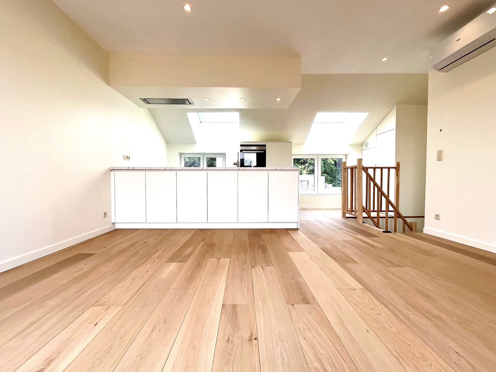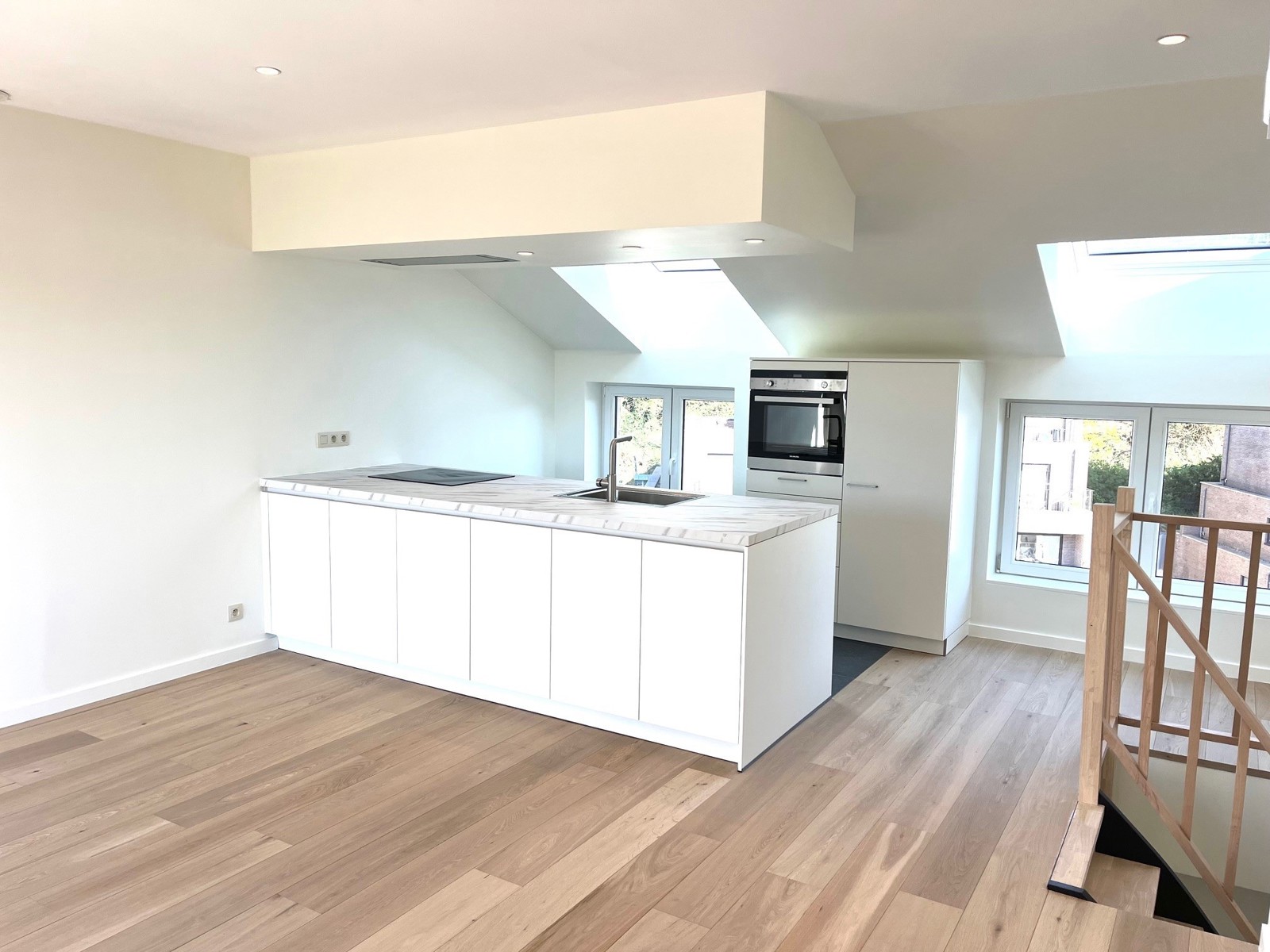 ST JOB - VIVIER D'OIE, aux 2 derniers étages d'un petit immeuble, Victoire vous propose ce sympathique duplex deux chambres et un bureau doté d'une belle terrasse orientée Sud. L'entrée du duplex se situe au 2ème étage: Petit hall d'entrée. Au 3ème étage: deux chambres (14 et 9m2), un bureau (7m2), une salle de douches et une toilette séparée. Au 4 ème étage: Belle pièce de vie avec cuisine ouverte full équipée, le séjour s'ouvre sur la terrasse confortable dont la vue est très dégagée. Les finitions sont de qualités: Le plancher est en chêne semi-massif de 1er choix, le système de chauffage est une pompe à chaleur qui génère à la fois le chauffage et l'air conditionné + système de ventilation double flux, l'eau chaude sanitaire est produite par un boiler thermodynamique, les châssis sont en PVC double vitrage. Le vaste hall d'entrée de l'immeuble fait aussi office de local vélo, motos. Une cave en sous-sol complète ce bien. Le bien fait partie d'une nouvelle copropriété de 4 unités dont les charges communes sont faibles. PEB est en attente (B+/B/ B-). La vente est soumise au régime de 21% de TVA. A visiter sans tarder !