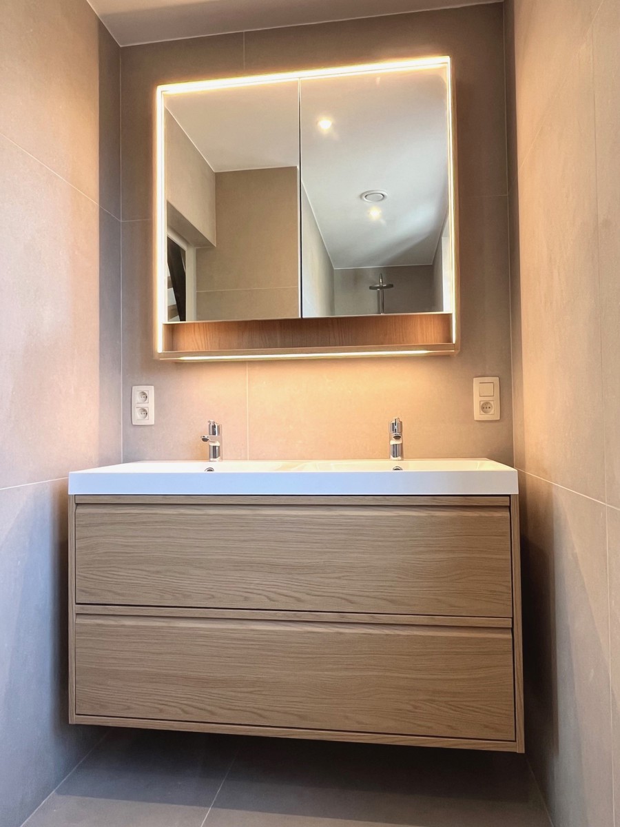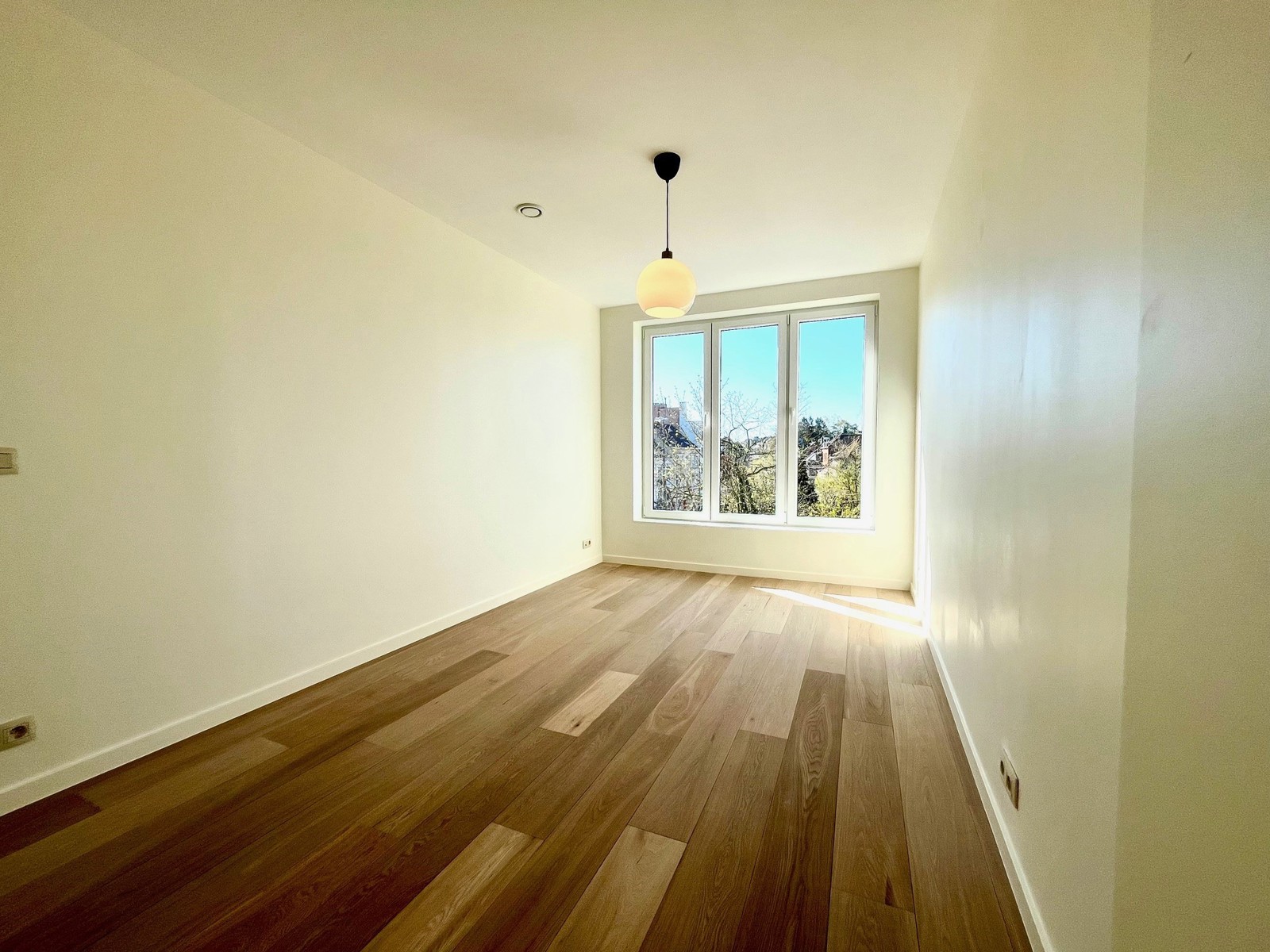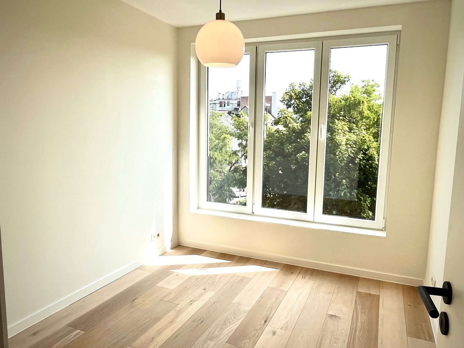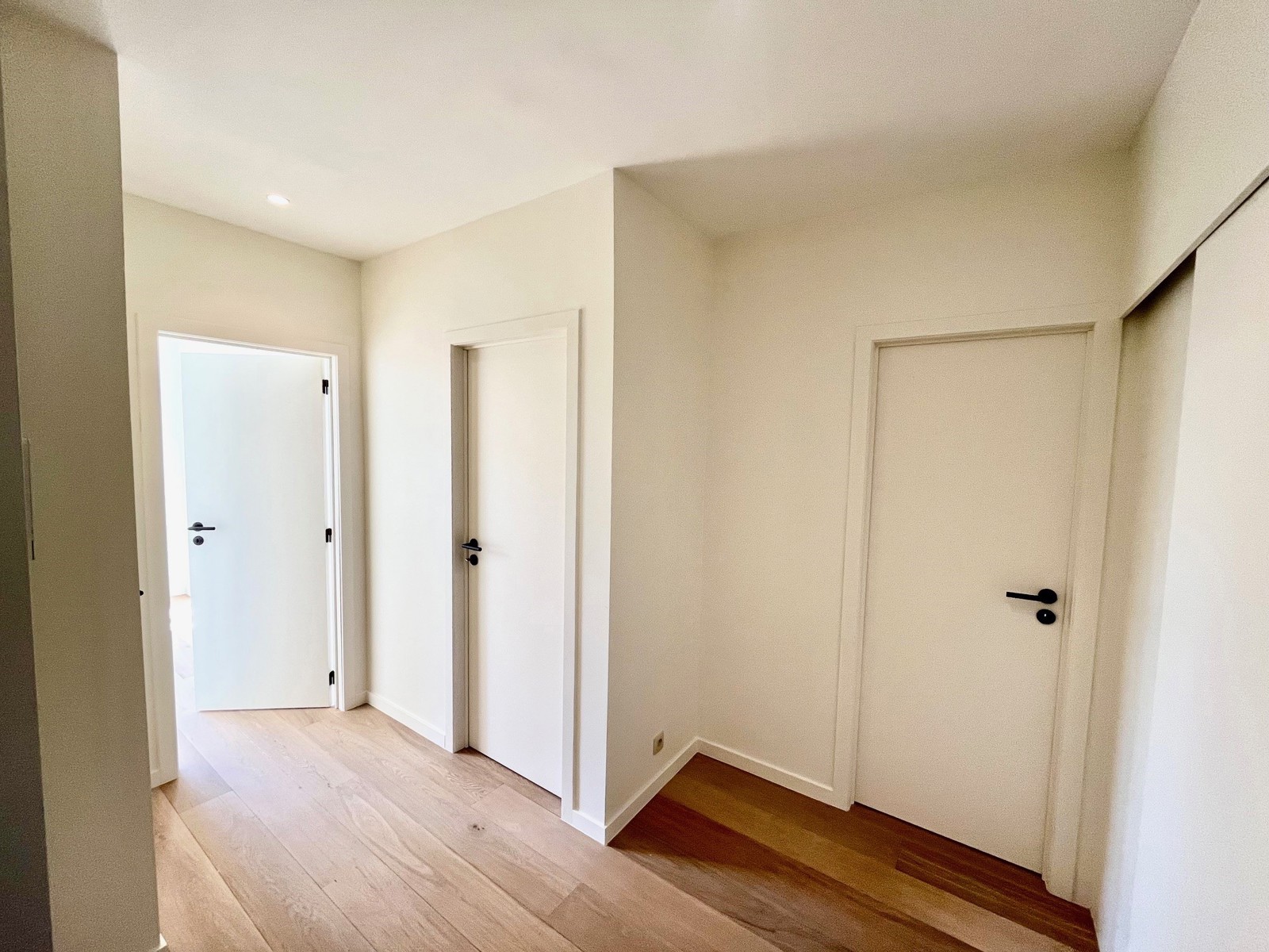 ST JOB - VIVIER D'OIE, aux 2 derniers étages d'un petit immeuble, Victoire vous propose ce sympathique duplex deux chambres et un bureau doté d'une belle terrasse orientée Sud. L'entrée du duplex se situe au 2ème étage: Petit hall d'entrée. Au 3ème étage: deux chambres (14 et 9m2), un bureau (7m2), une salle de douches et une toilette séparée. Au 4 ème étage: Belle pièce de vie avec cuisine ouverte full équipée, le séjour s'ouvre sur la terrasse confortable dont la vue est très dégagée. Les finitions sont de qualités: Le plancher est en chêne semi-massif de 1er choix, le système de chauffage est une pompe à chaleur qui génère à la fois le chauffage et l'air conditionné + système de ventilation double flux, l'eau chaude sanitaire est produite par un boiler thermodynamique, les châssis sont en PVC double vitrage. Le vaste hall d'entrée de l'immeuble fait aussi office de local vélo, motos. Une cave en sous-sol complète ce bien. Le bien fait partie d'une nouvelle copropriété de 4 unités dont les charges communes sont faibles. PEB est en attente (B+/B/ B-). La vente est soumise au régime de 21% de TVA. A visiter sans tarder !