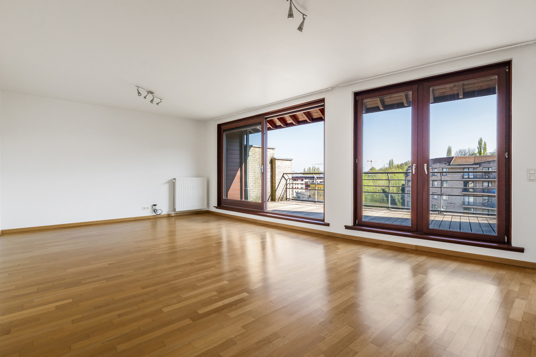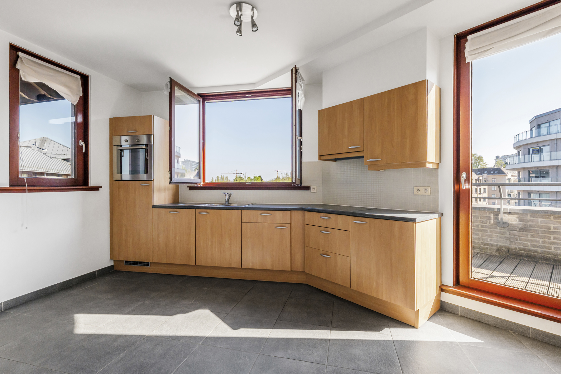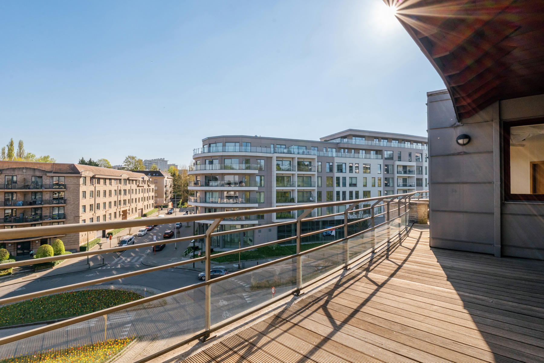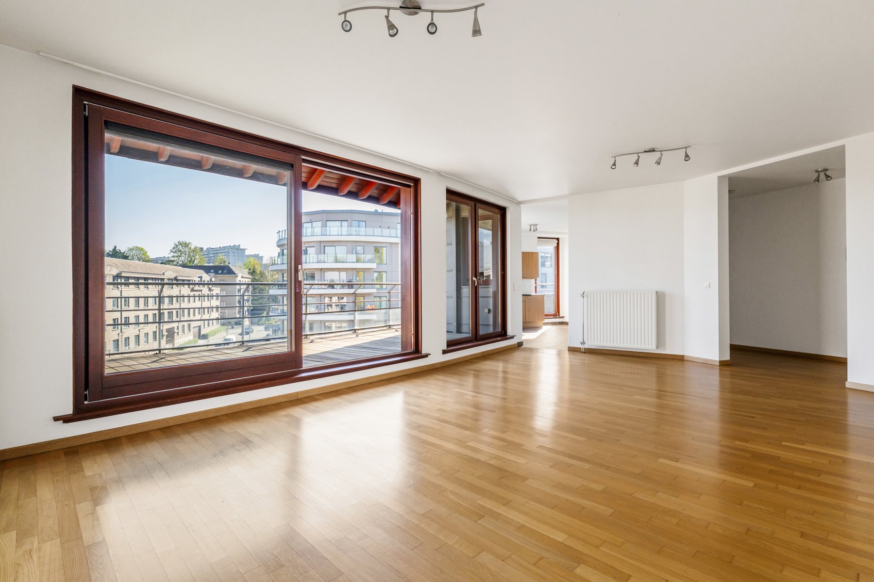SOUS OPTION !!! Woluwe Saint Lambert : Victoire - Junot vous présente en exclusivité ce penthouse situé au 4è étage d'un immeuble construit en 2005 développe une superficie de ±115 m² hors terrasses (14 et 8 m²) orientées sud. Spacieuses réceptions (parquet) accès terrasses, cuisine super équipée avec buanderie attenante, accès terrasse, une grande chambre avec sdb une petite chambre,, sdd. Cave et possibilité d'acquérir un emplacement parking (20.000 euros). Proximité commerces, transports accès ring, écoles, ville, aéroport. Electricité conforme. Chaudière individuelle au gaz. PEB D