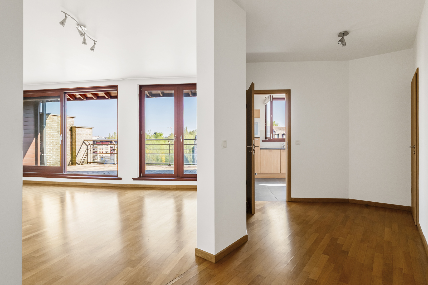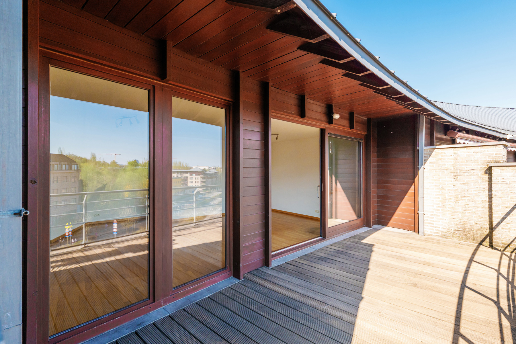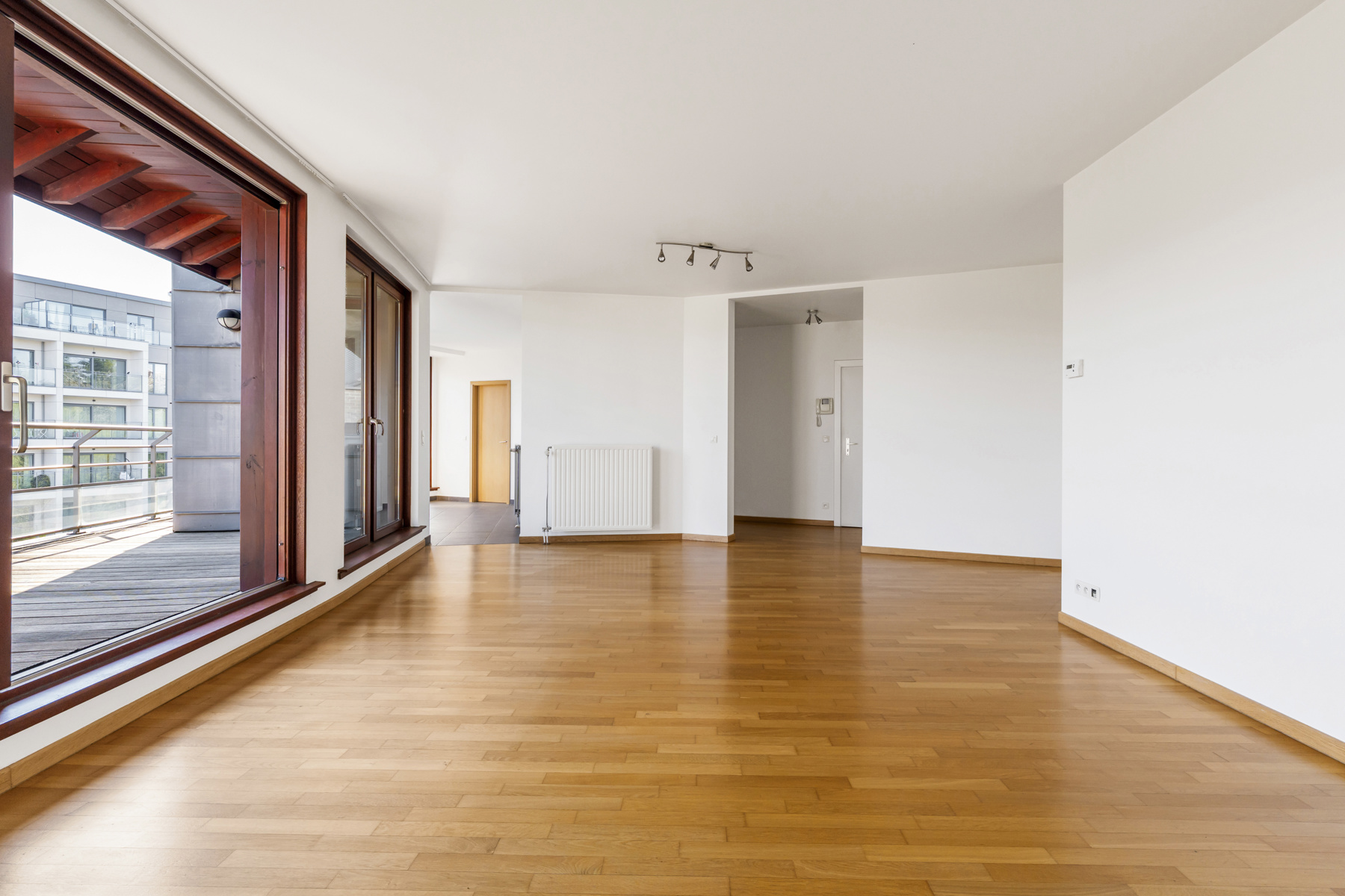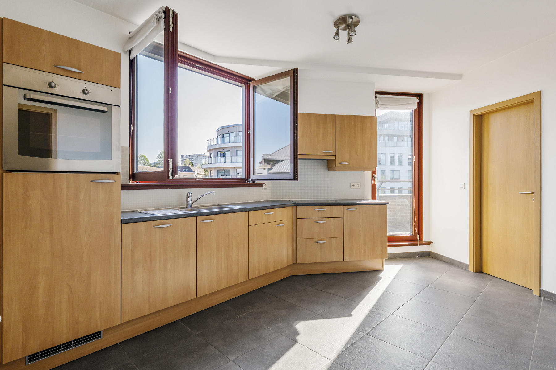 SOUS OPTION !!! Woluwe Saint Lambert : Victoire - Junot vous présente en exclusivité ce penthouse situé au 4è étage d'un immeuble construit en 2005 développe une superficie de ±115 m² hors terrasses (14 et 8 m²) orientées sud. Spacieuses réceptions (parquet) accès terrasses, cuisine super équipée avec buanderie attenante, accès terrasse, une grande chambre avec sdb une petite chambre,, sdd. Cave et possibilité d'acquérir un emplacement parking (20.000 euros). Proximité commerces, transports accès ring, écoles, ville, aéroport. Electricité conforme. Chaudière individuelle au gaz. PEB D