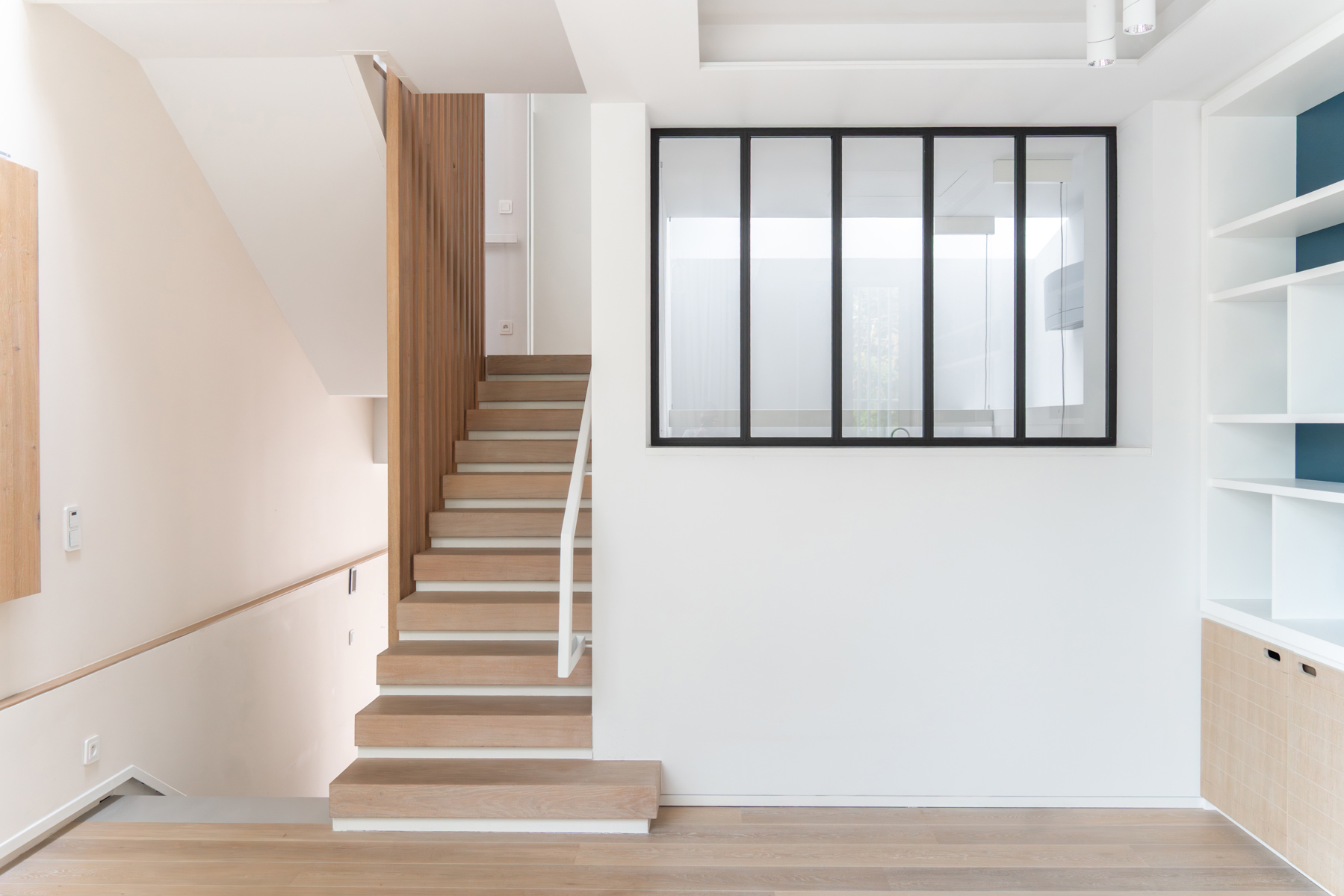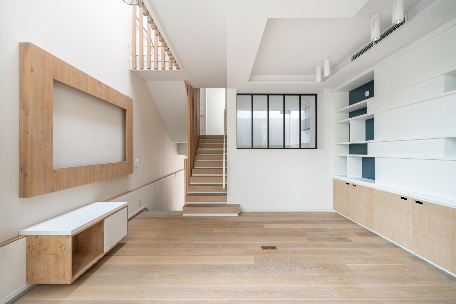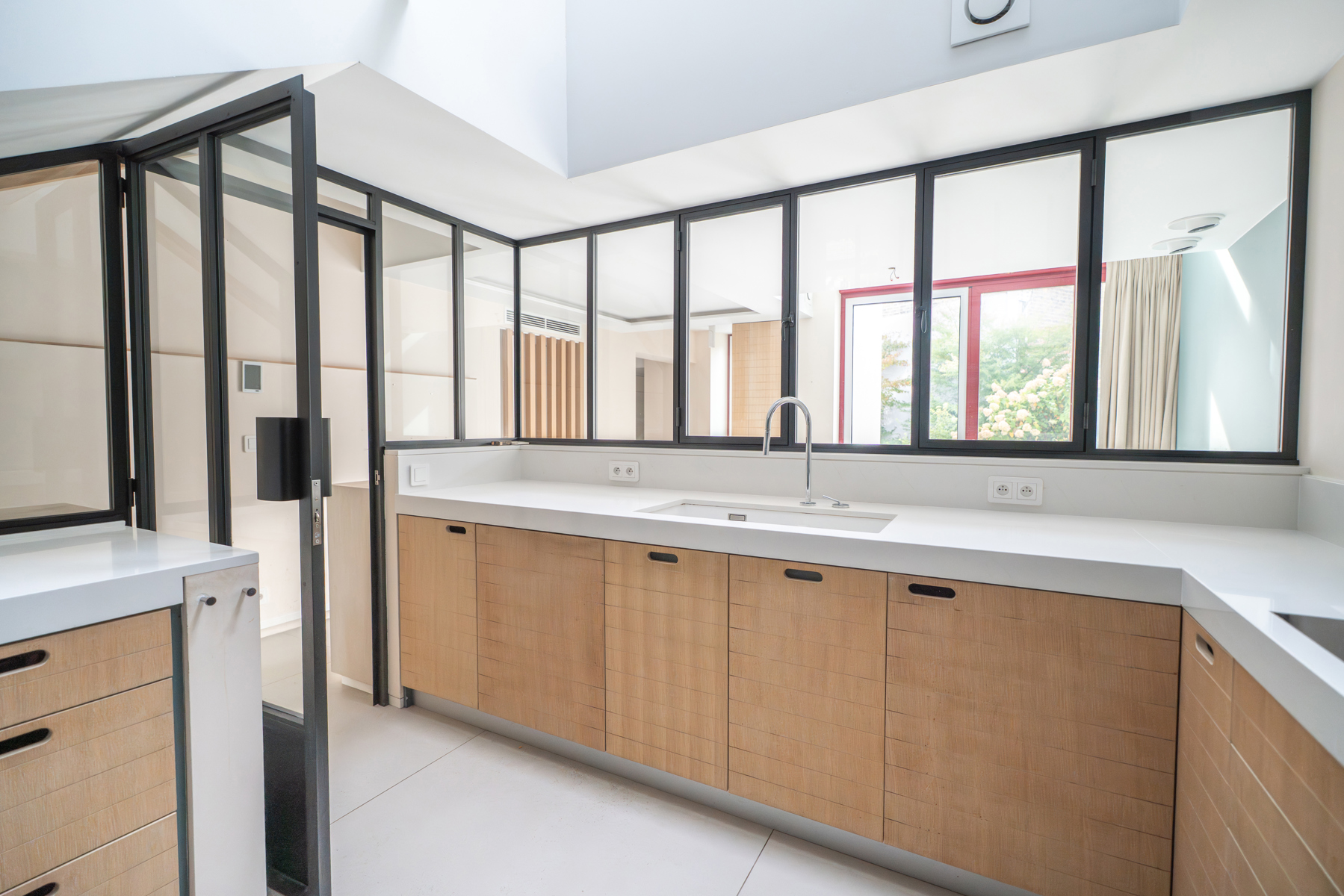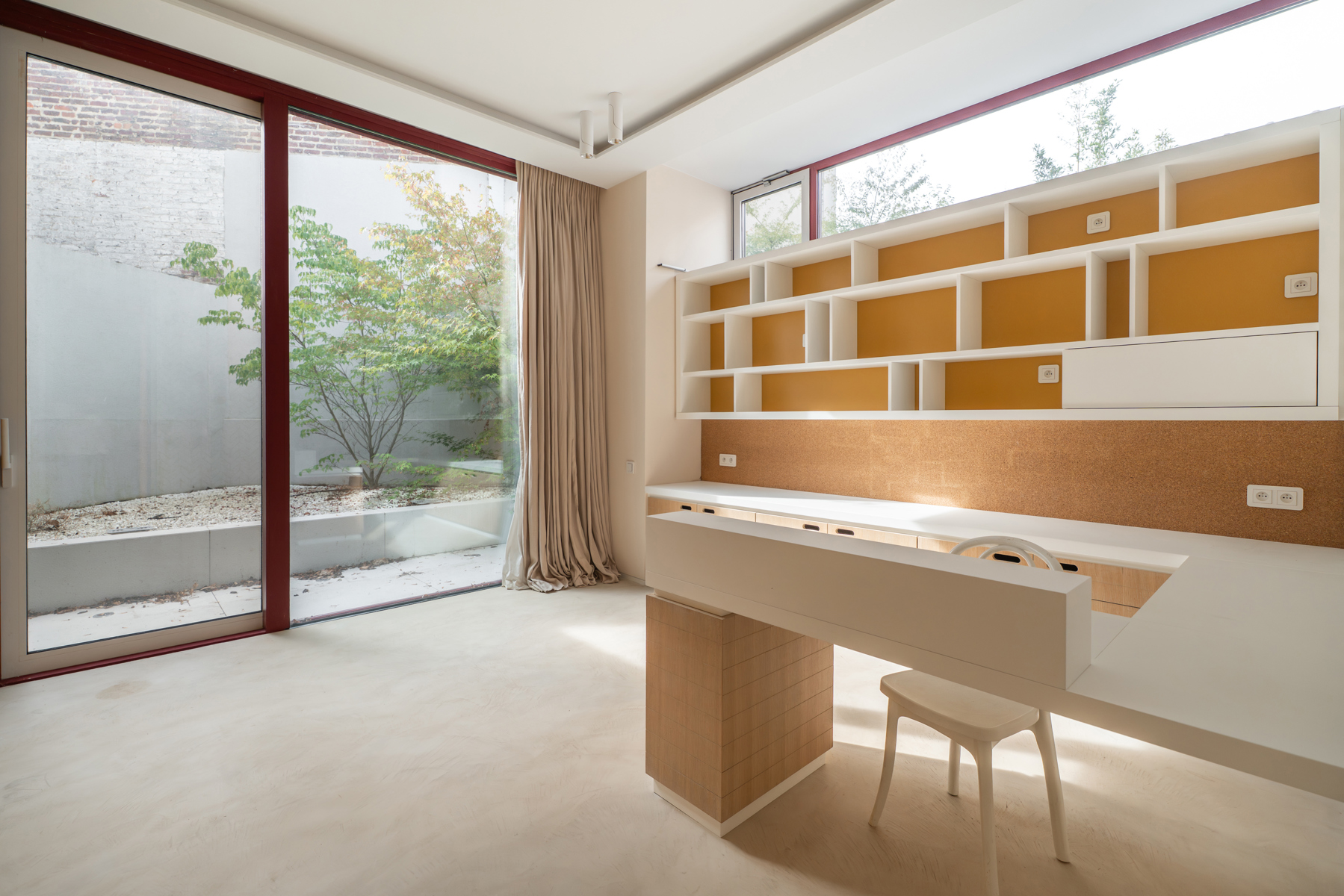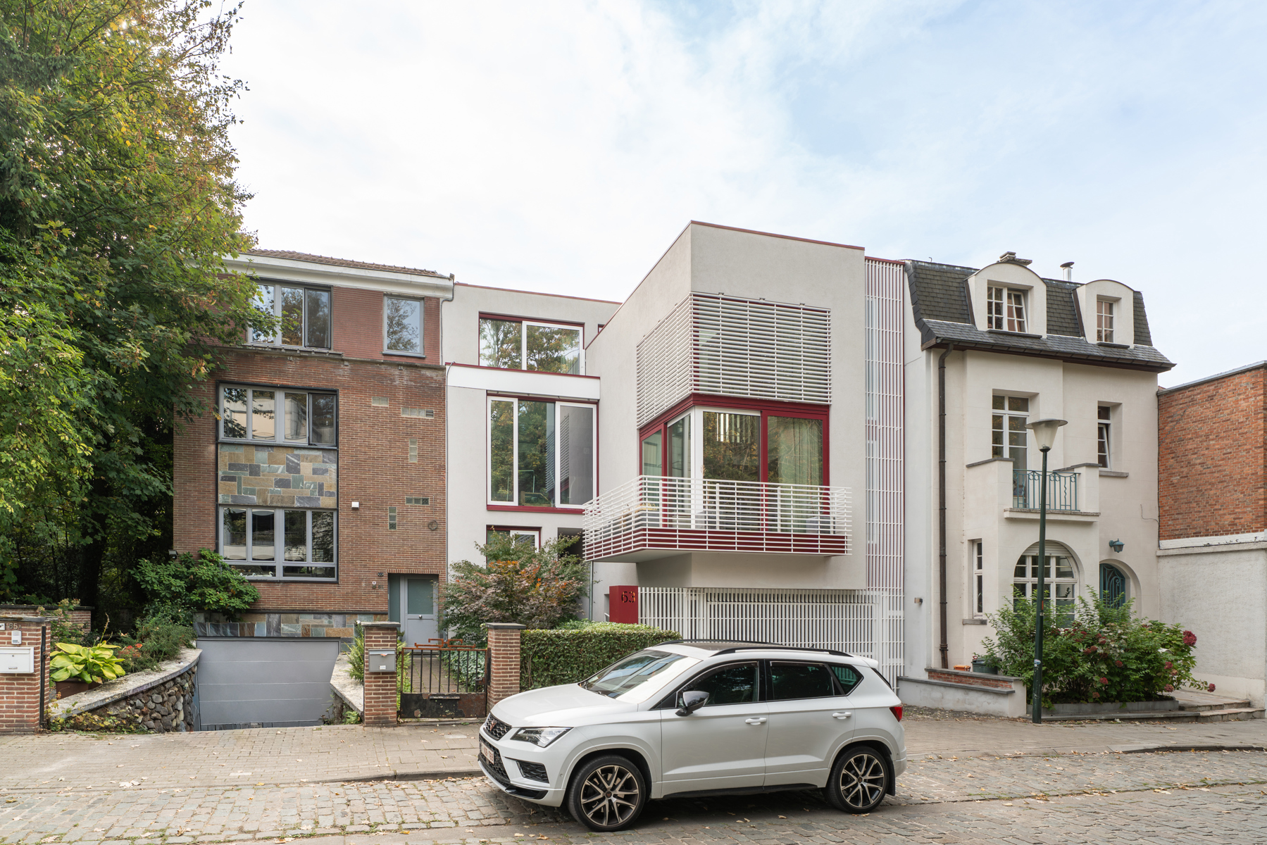Située dans un quartier résidentiel verdoyant d’Uccle, à deux pas du parc de Wolvendael et du Dieweg, Victoire-Junot vous propose cette lumineuse maison contemporaine d'environ 300 m² habitables. Elle combine harmonieusement espace de vie familial et espace professionnel, idéal pour une profession libérale grâce à une entrée indépendante menant à un cabinet avec salle d’attente et sanitaires facilement aménageable afin d'en faire un appartement séparé pour du personnel ou un adolescent. L’habitation s’ouvre sur un hall d’entrée avec vestiaire, menant à une cuisine moderne entièrement équipée, une salle à manger conviviale ouverte sur une cour ensoleillée orientée sud-ouest, et un salon aux grandes baies vitrées prolongé d’une mezzanine pouvant faire office de bureau ou de chambre supplémentaire. À l’étage, la suite parentale offre une chambre avec terrasse, un dressing, une salle de bains et un grand dressing. Deux chambres supplémentaires se trouvent au dernier niveau, accompagnées d’une salle de bains et d’un espace polyvalent. Une cinquième/sixième chambre peut être ajoutée facilement. En sous-sol, la maison dispose d’un grand garage pour 2 véhicules, d’une buanderie et de caves. Confort et durabilité sont au rendez-vous : triple vitrage, ventilation double flux, climatisation intégrée, panneaux solaires, citerne d’eau de pluie et nombreux rangements sur mesure. Offrant calme, intimité et une proximité directe avec les transports, commerces et écoles internationales, cette maison représente une belle opportunité dans un cadre naturel préservé. PEB C+.