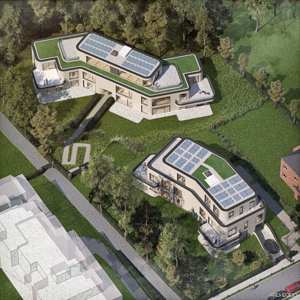 Dit project van twee villaflats, voorgesteld door Victoire-JUNOT, geniet van een bijzonder bevoorrechte ligging in de rustige en gewilde wijk van de Sterrenwacht en de GroeneJacht, op een steenworp van het Terkamerenbos en de activiteiten van deze woonwijk van Ukkel. Genesteld in een groene omgeving, in het hart van een prachtige tuin die ongeëvenaarde rust biedt, stelt dit project negen ruime appartementen voor, variërend van 153 tot 374 m², waarvan de discrete elegantie en afwerking op maat bijdragen aan het creëren van harmonieuze ruimtes. De appartementen hebben terrassen en/of tuinen, met behoud van privacy om totale rust te garanderen. De villa's hebben een horizontale architectuur met zachte lijnen die perfect opgaan in het groene landschap. De gebruikte materialen van hoge kwaliteit en zonder opsmuk zullen op natuurlijke wijze opgaan in de omgeving. Een dubbele parkeergarage en een kelder zullen beschikbaar zijn als extra's, voor extra parkeer- en opslagfaciliteiten. Het project wordt ontworpen door ARCHI2000, een architectenbureau dat bekend staat om zijn expertise en aandacht voor detail. Alle voorzieningen worden zorgvuldig geselecteerd om elke bewoner superieure kwaliteit te bieden. Verkoop onderworpen aan DE (12,5%) voor het grondgedeelte en BTW voor het bouwgedeelte. Oplevering gepland in January 2026. Voor optimaal comfort zal elk appartement profiteren van een individuele warmtepomp, aangevuld met fotovoltaïsche zonnepanelen, die energieprestaties van klasse A garanderen.