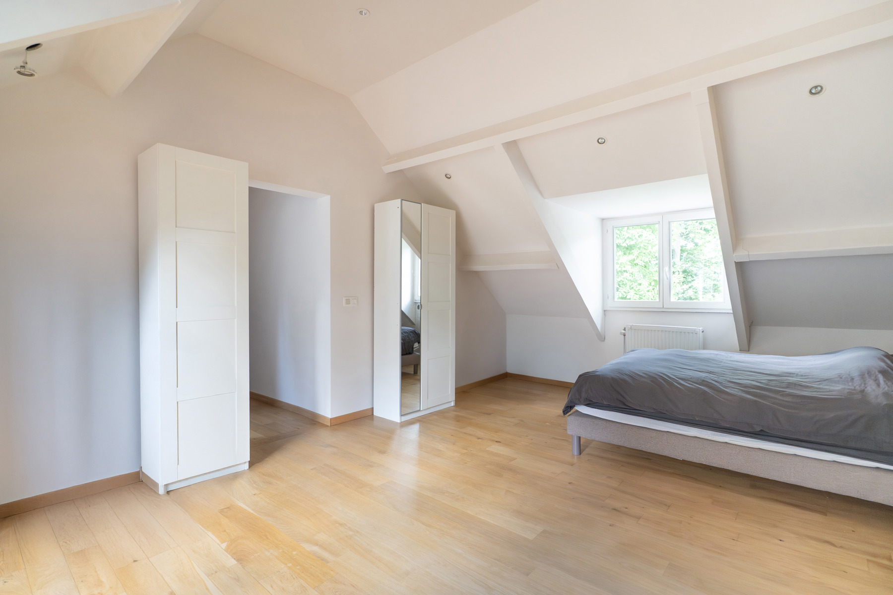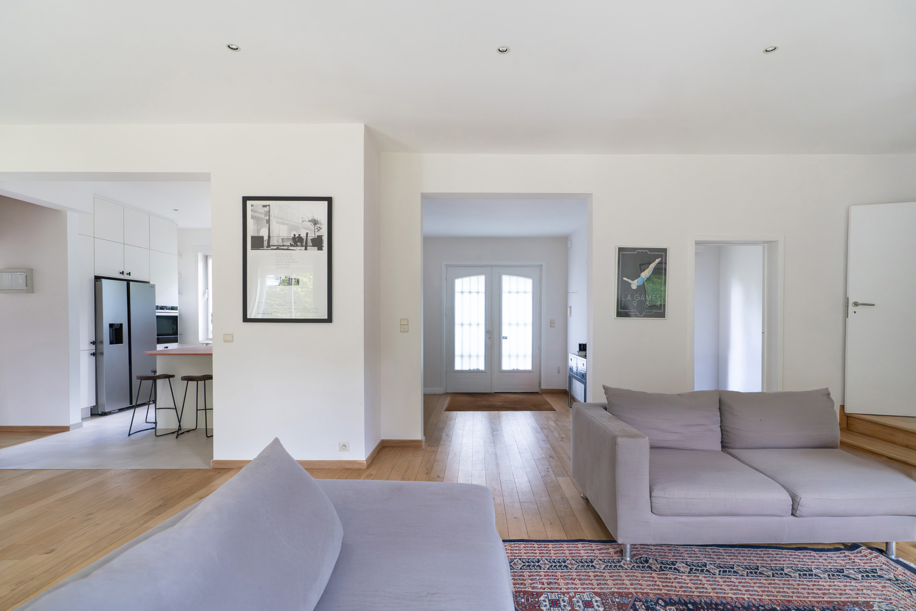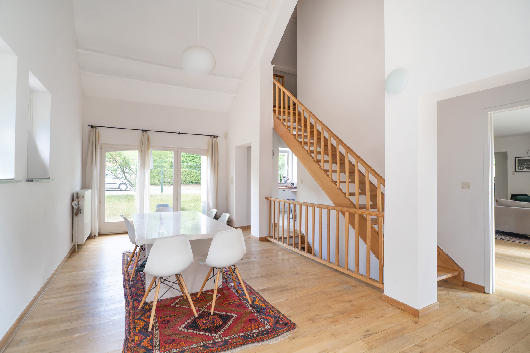 In de prestigieuze wijk Prins van Oranje, grenzend aan een klein bos, schitterende woning van ±269 m² bewoonbare oppervlakte op een perceel van ±12 are, ideaal georiënteerd op het westen. Grondig gerenoveerd in 2002 en 2023 en ingedeeld als volgt: inkomhal, ruime en lichtrijke woonkamer met open haard en toegang tot de volledig ingerichte Amerikaanse keuken, eetkamer, een slaapkamer van ±18 m², een tweede slaapkamer van ±15 m² en twee doucheruimtes. Op de eerste verdieping bevinden zich drie slaapkamers van respectievelijk ±18, 15 en 15 m², en twee doucheruimtes. Verder beschikt de woning over een wasruimte, kelders, fietsenberging, open haard en geen inkijk. Elektriciteit niet conform. EPC: F.