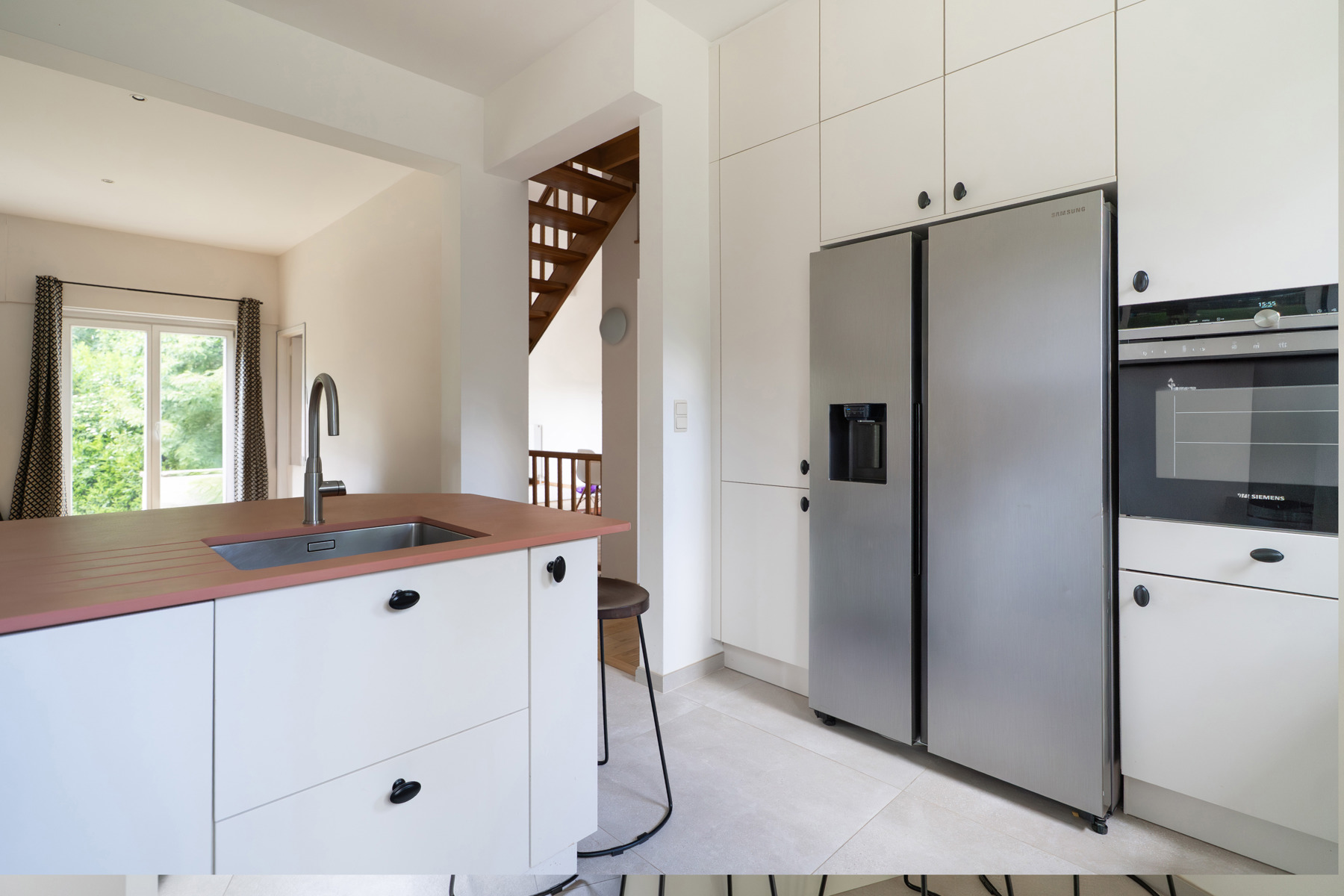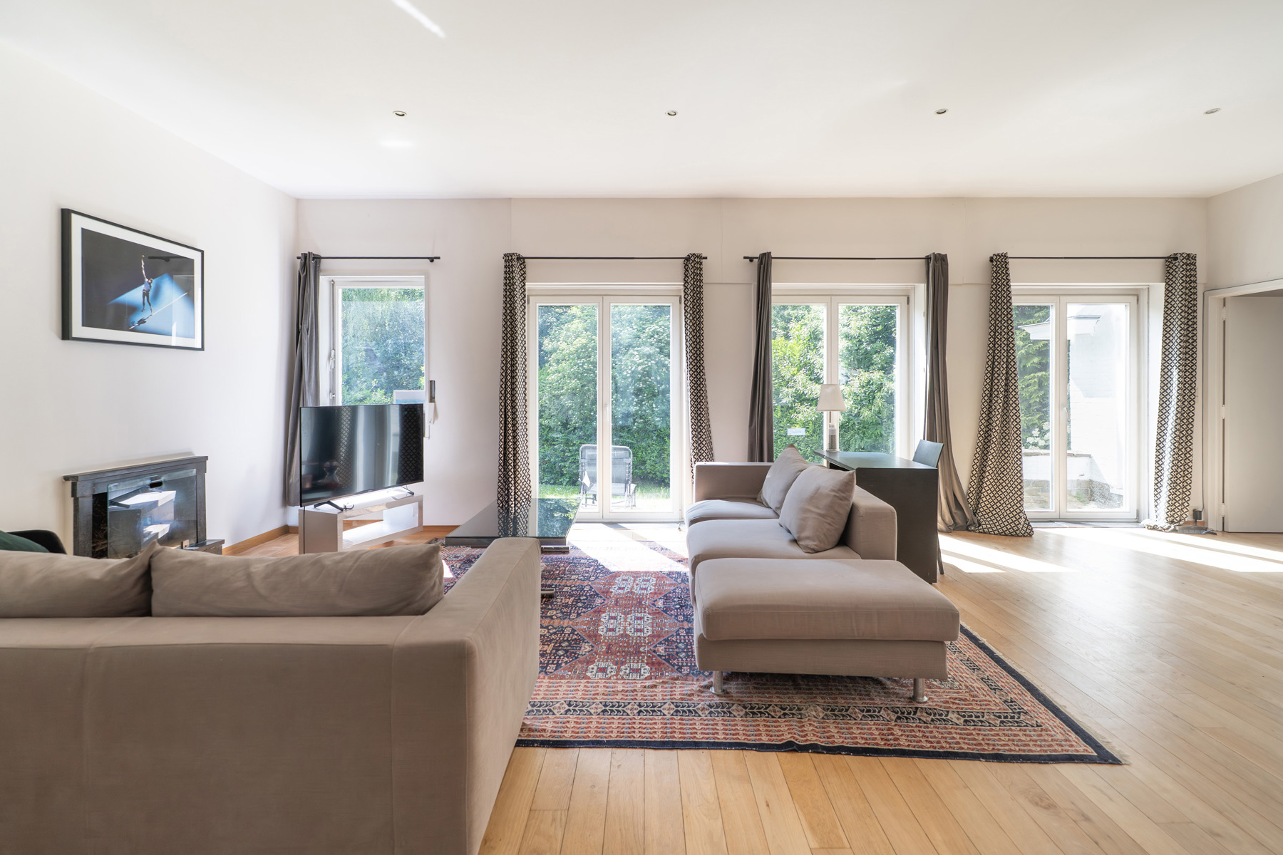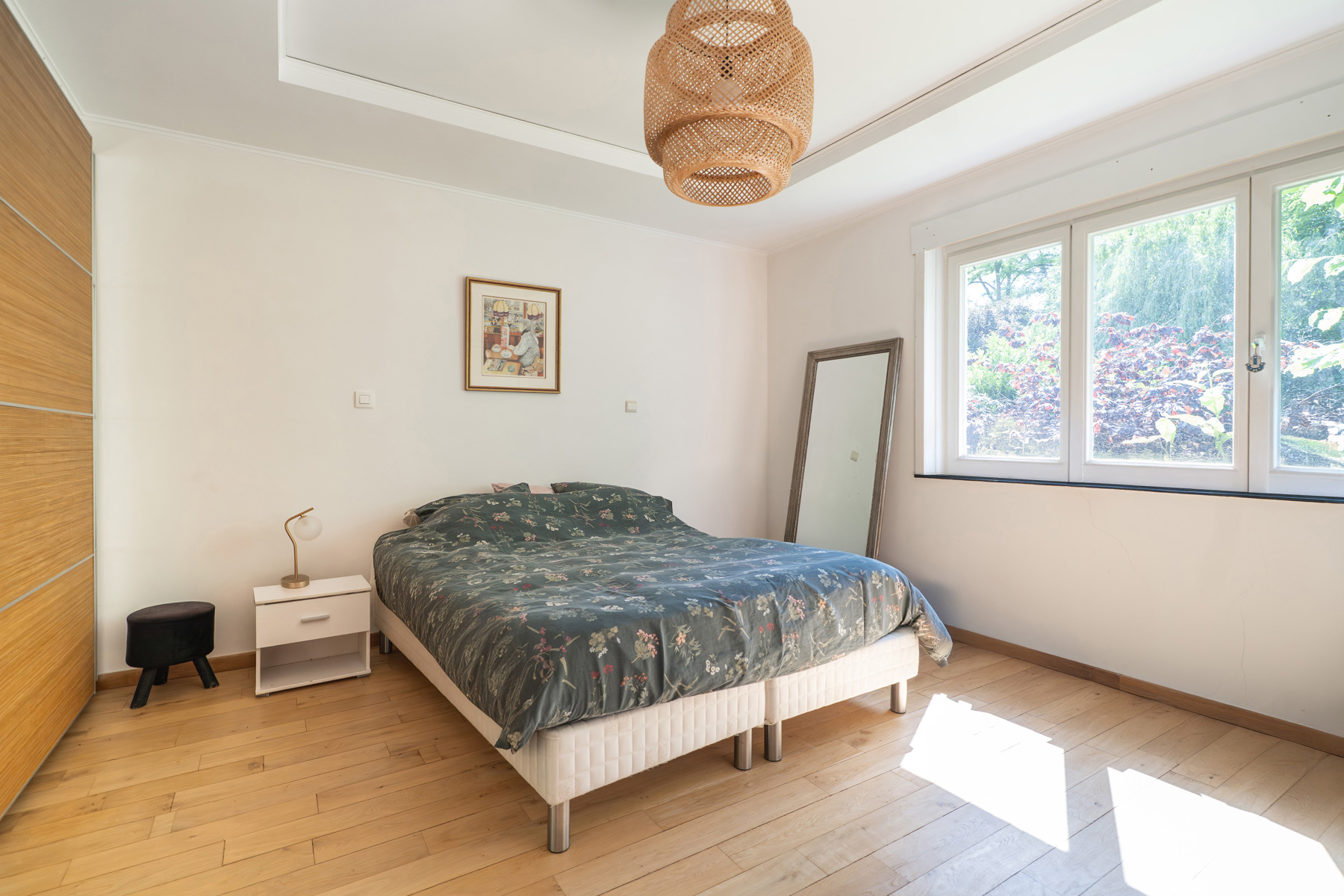 In de prestigieuze wijk Prins van Oranje, grenzend aan een klein bos, schitterende woning van ±269 m² bewoonbare oppervlakte op een perceel van ±12 are, ideaal georiënteerd op het westen. Grondig gerenoveerd in 2002 en 2023 en ingedeeld als volgt: inkomhal, ruime en lichtrijke woonkamer met open haard en toegang tot de volledig ingerichte Amerikaanse keuken, eetkamer, een slaapkamer van ±18 m², een tweede slaapkamer van ±15 m² en twee doucheruimtes. Op de eerste verdieping bevinden zich drie slaapkamers van respectievelijk ±18, 15 en 15 m², en twee doucheruimtes. Verder beschikt de woning over een wasruimte, kelders, fietsenberging, open haard en geen inkijk. Elektriciteit niet conform. EPC: F.
