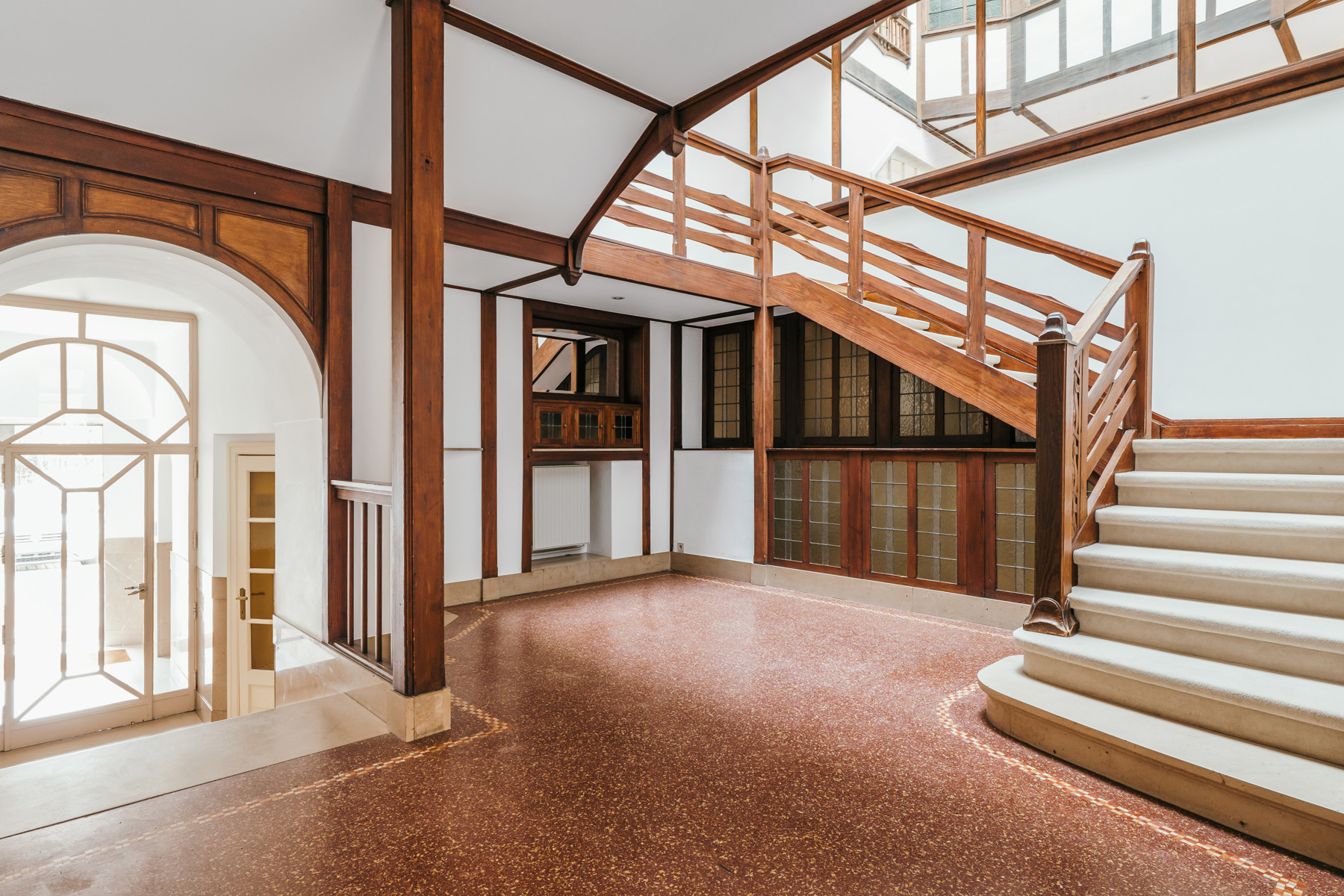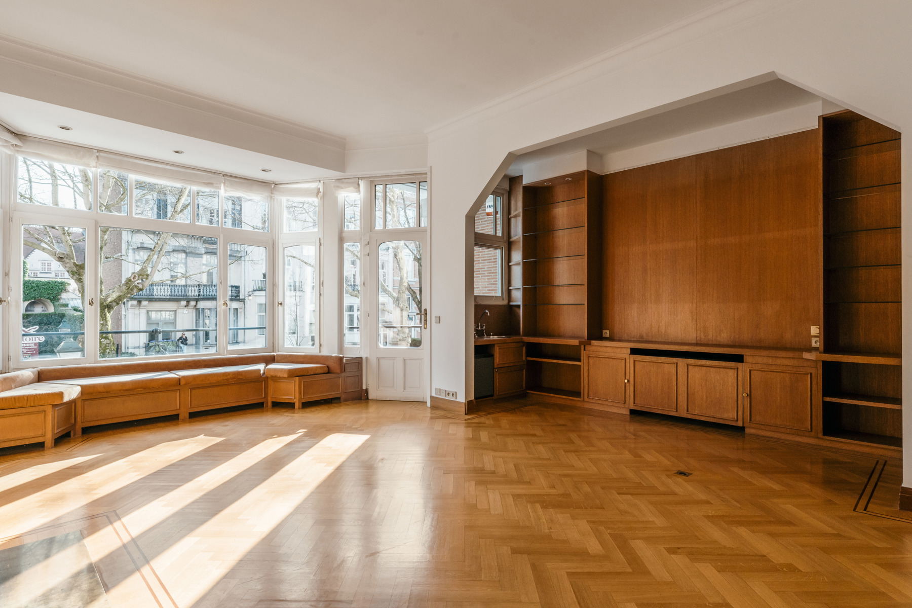 Avenue Molière, in de nabijheid van de Brugmannplein, opmerkelijk huis in pre-modernistische stijl, ontworpen op verzoek van advocaat Charles Gheude, naar de plannen van de architecten Antoine Pompe en Fernand Bodson, 1913. Gebouwd op een perceel van 3a60, met een oppervlakte van 611m² (volgens het EPC), beschikt het huis over 5 slaapkamers en 5 sanitaire ruimtes. De gevel is doorbroken met niet-uitgelijnde raamopeningen, waardoor een prachtig lichtspel in de woonruimtes ontstaat. Prachtig terras en tuin in absolute rust. Ruime garage. EPC C. Volledige dossier op aanvraag.