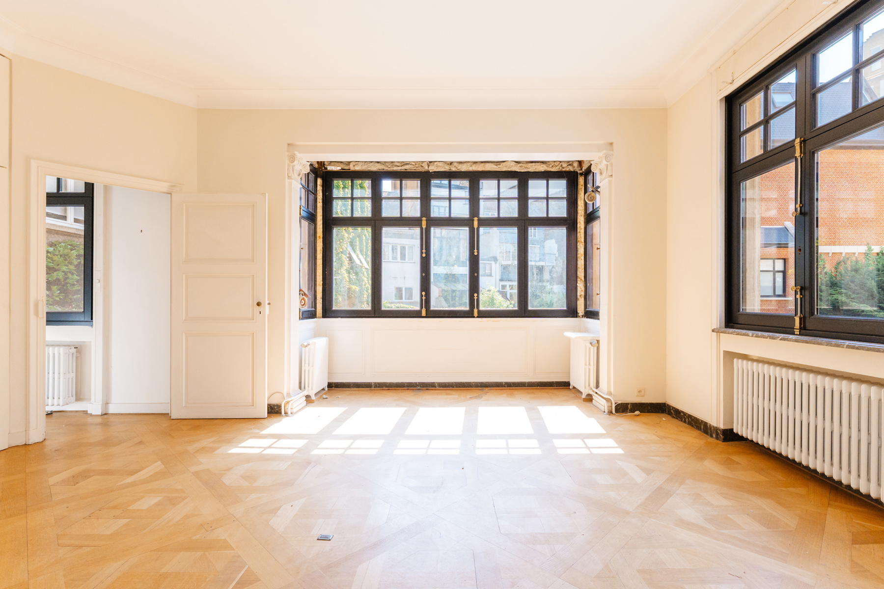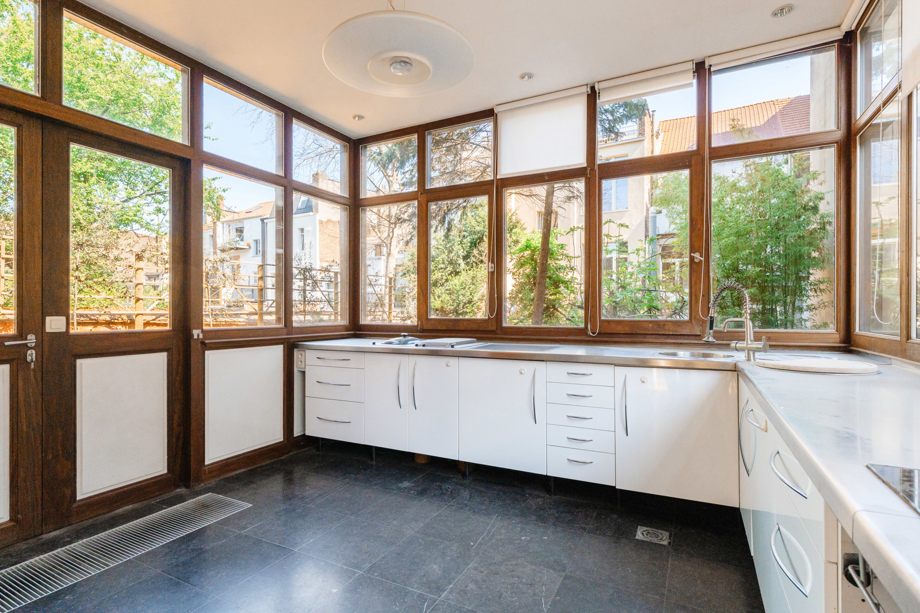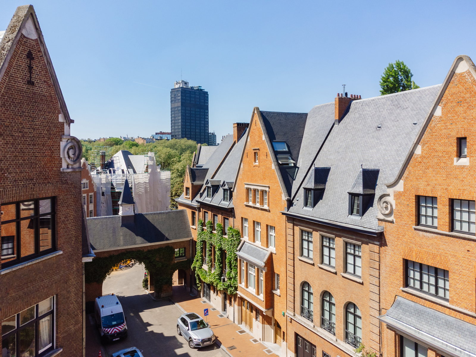 Voor de Abdij Ter Kameren en dicht bij de Vijvers van Elsene, in een exclusieve en beveiligde privé-inham, stelt Victoire-Junot met plezier deze elegante woning van 390 m² bewoonbare oppervlakte voor, die nog verder afgewerkt dient te worden. Inkomhal met vestiaire en gastentoilet, bureau, dienstkamer of tweede bureau (mogelijkheid voor vrij beroep), wasruimte. Mooie trappenhal die leidt naar de eerste verdieping, bestaande uit twee salons met toegang tot de tuin, een eetkamer en een keuken. Op de tweede verdieping: een master suite met dressing en badkamer, een extra slaapkamer met badkamer. Op de bovenste verdieping: twee slaapkamers en een doucheruimte. Talrijke kelders. Garage voor één wagen. Alle verdiepingen zijn bereikbaar met een lift. Mogelijkheid tot aankoop van een tweede garage in het square (150.000 euro). Nieuwe leien dakbedekking met isolatie en nieuwe ramen in originele stijl doorheen de hele woning. Zeer mooi renovatieproject ontworpen door Olivier Lempereur.