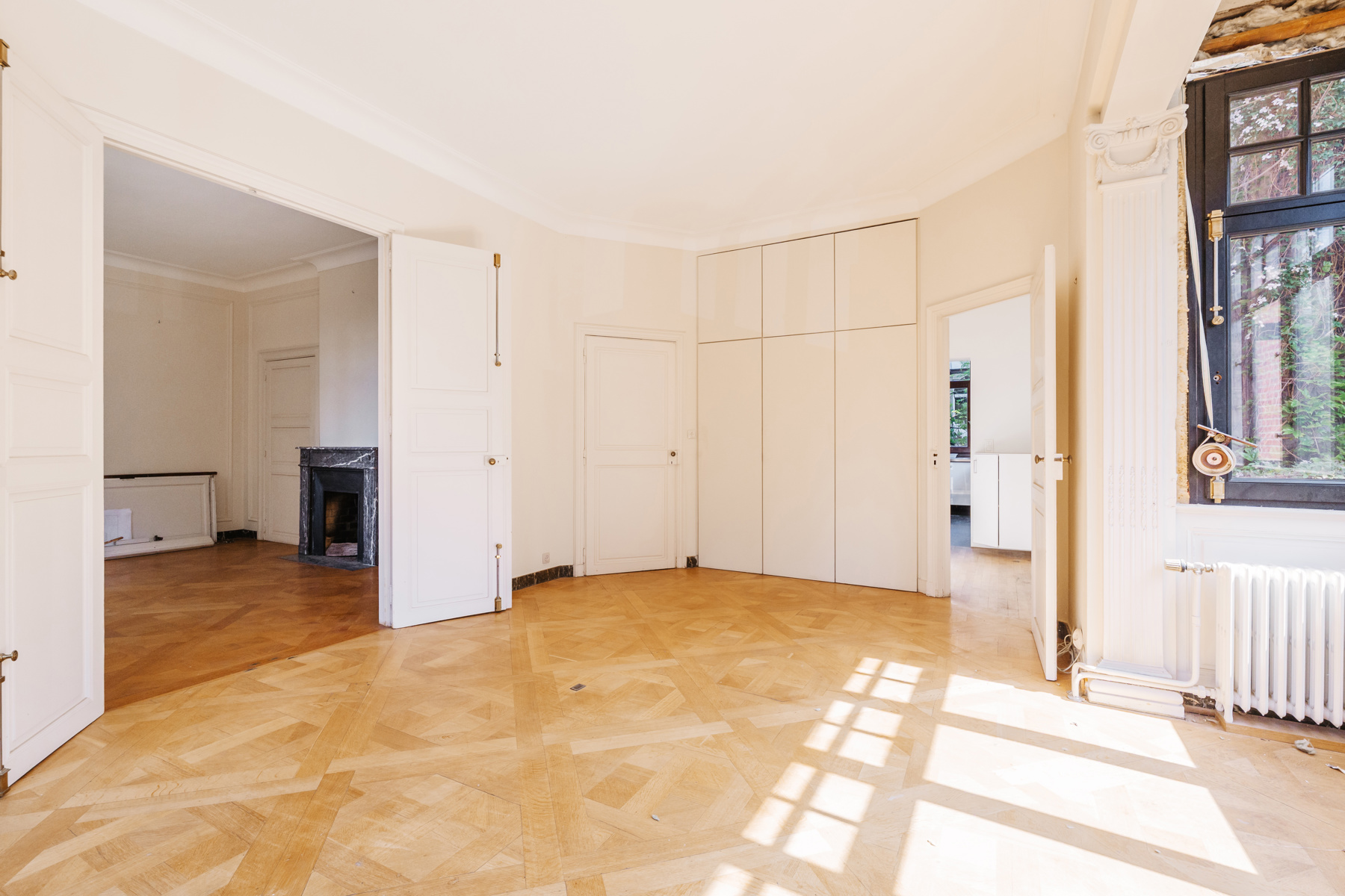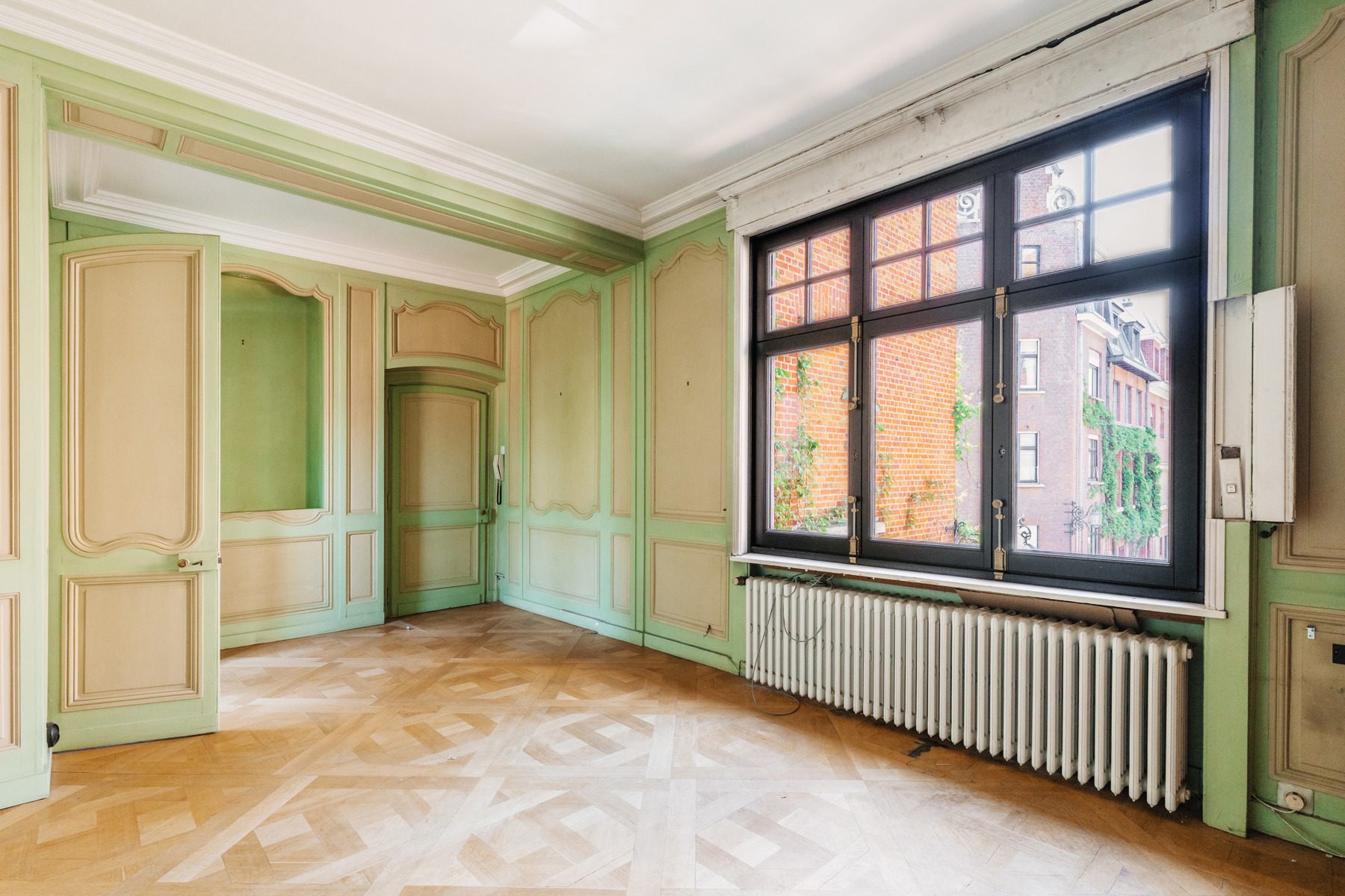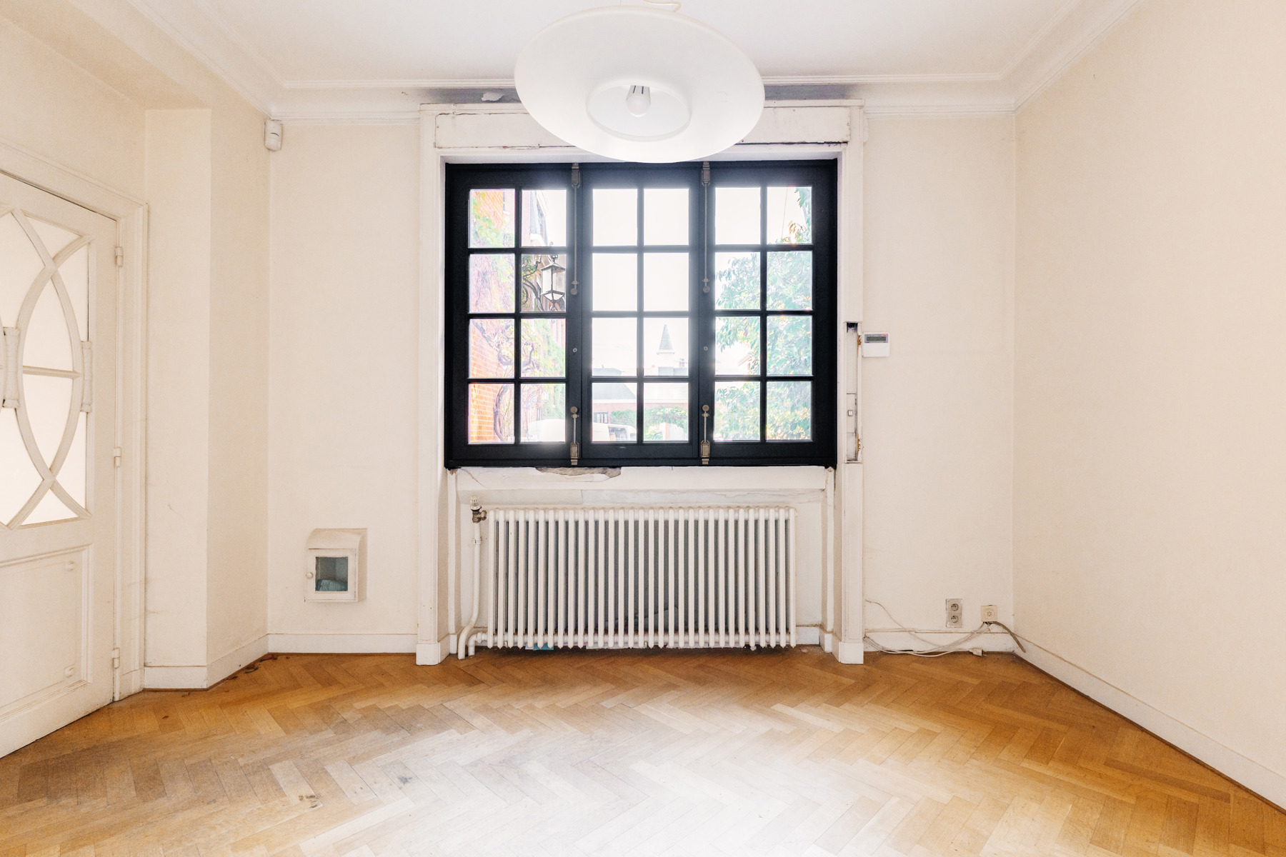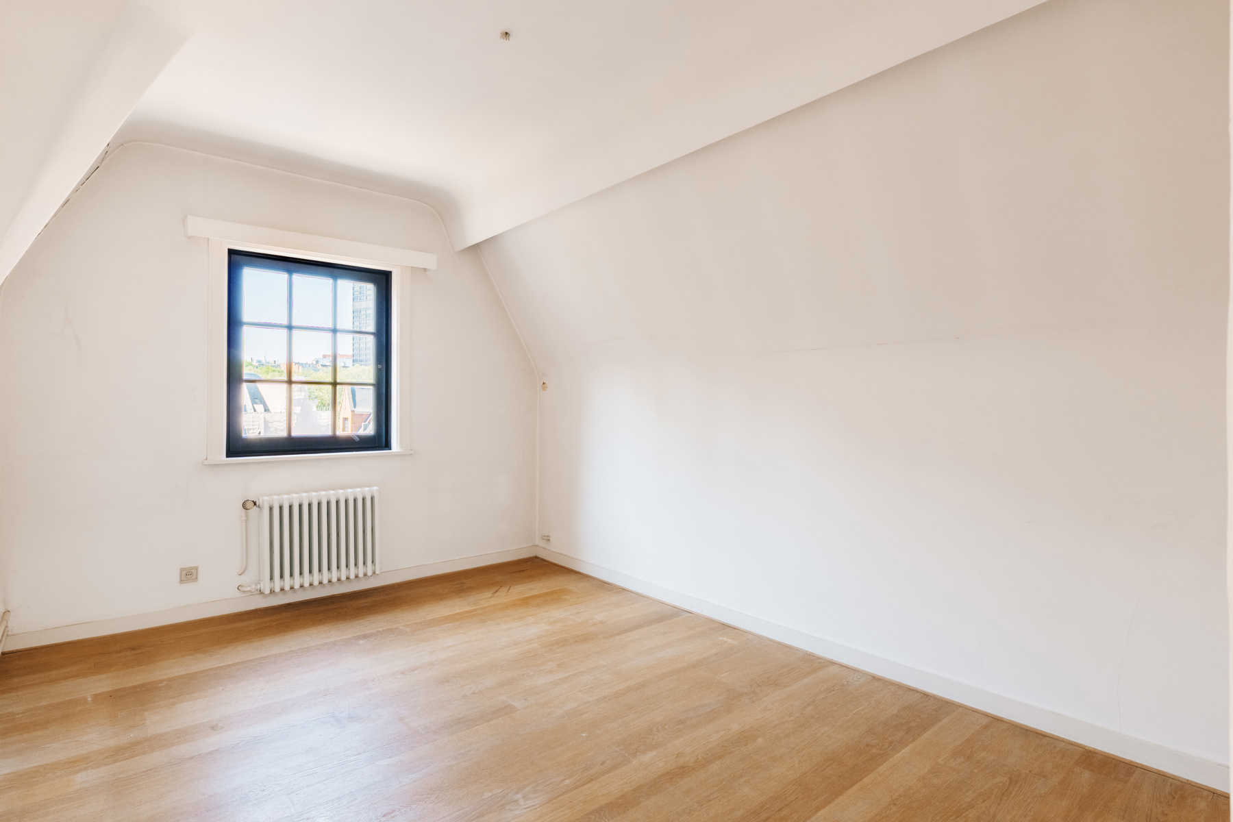 Voor de Abdij Ter Kameren en dicht bij de Vijvers van Elsene, in een exclusieve en beveiligde privé-inham, stelt Victoire-Junot met plezier deze elegante woning van 390 m² bewoonbare oppervlakte voor, die nog verder afgewerkt dient te worden. Inkomhal met vestiaire en gastentoilet, bureau, dienstkamer of tweede bureau (mogelijkheid voor vrij beroep), wasruimte. Mooie trappenhal die leidt naar de eerste verdieping, bestaande uit twee salons met toegang tot de tuin, een eetkamer en een keuken. Op de tweede verdieping: een master suite met dressing en badkamer, een extra slaapkamer met badkamer. Op de bovenste verdieping: twee slaapkamers en een doucheruimte. Talrijke kelders. Garage voor één wagen. Alle verdiepingen zijn bereikbaar met een lift. Mogelijkheid tot aankoop van een tweede garage in het square (150.000 euro). Nieuwe leien dakbedekking met isolatie en nieuwe ramen in originele stijl doorheen de hele woning. Zeer mooi renovatieproject ontworpen door Olivier Lempereur.