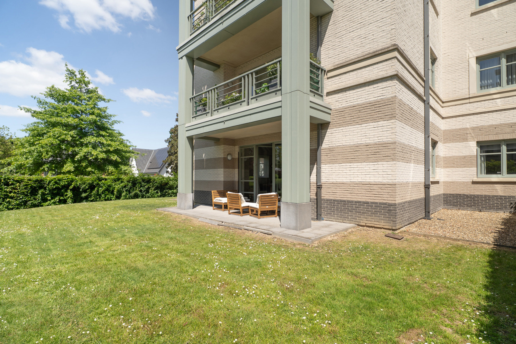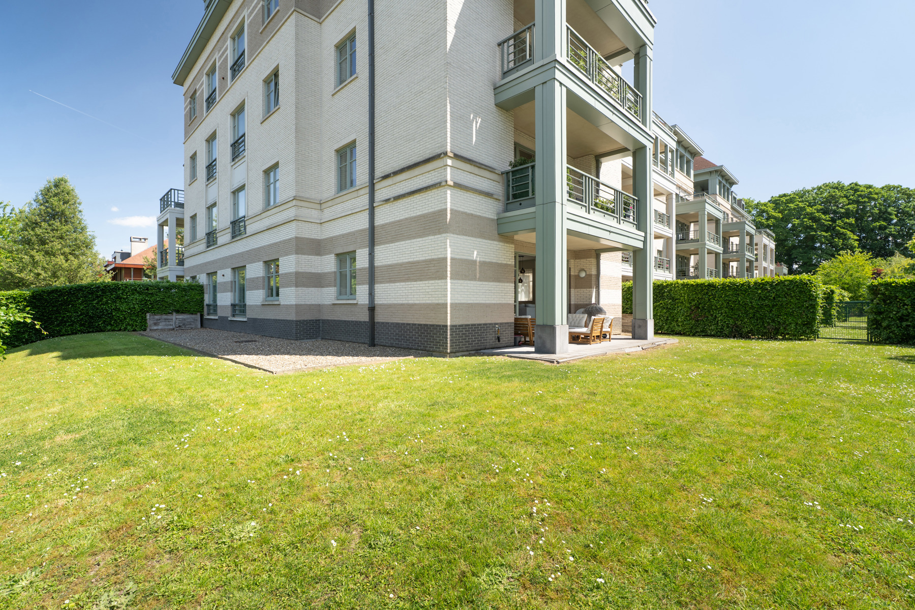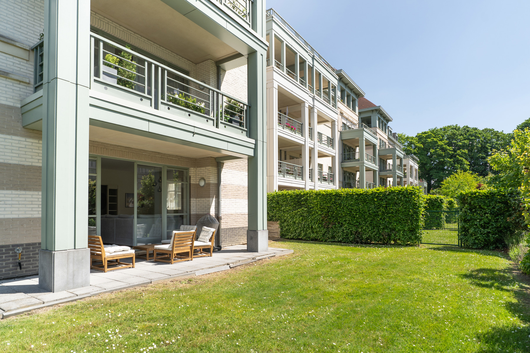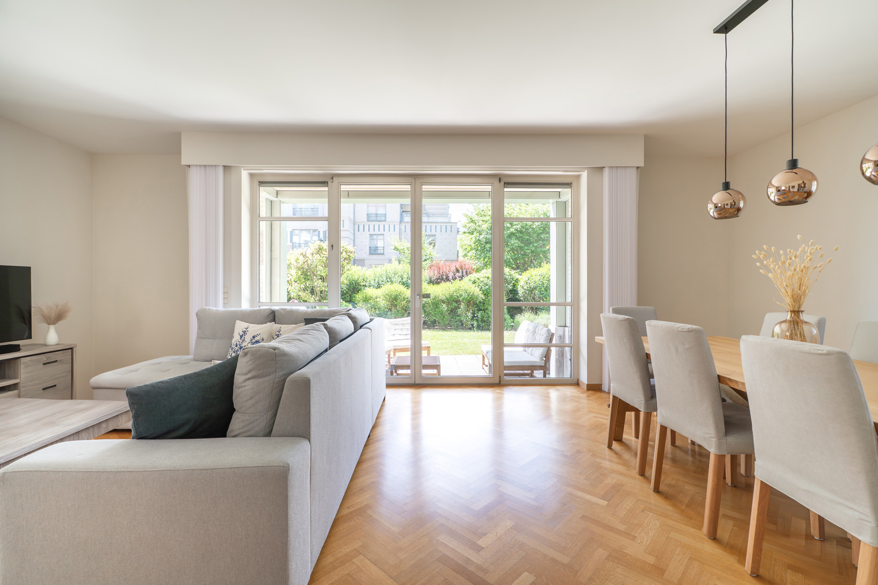 IN OPTIE !!! In de nabijheid van het Sint-Alixplein en alle voorzieningen, gelegen in een rustige residentiële straat, biedt Victoire-Junot u exclusief dit prachtige gelijkvloers appartement aan met terras en tuin. Met een bewoonbare oppervlakte van 140 m² omvat het appartement een mooie woonkamer van 43 m² die uitgeeft op het terras en de zuidwestgerichte tuin, een volledig uitgeruste keuken, 3 mooie slaapkamers (15, 11 en 10 m²), een dressing, een badkamer, een douchekamer en een wasruimte. Een garagebox, een binnenparkeerplaats en een kelder vervolledigen dit aantrekkelijke aanbod.